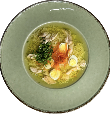 з локшиною та перепелиним яйцем