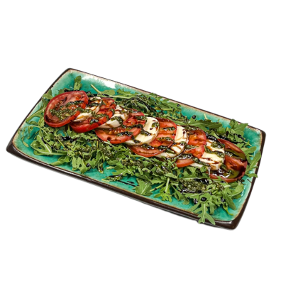 рукола, моцарела, помідори, соус песто, бальзамік